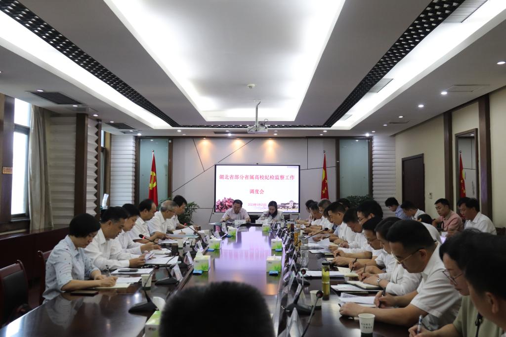 (纪委·监察专员办公室 通讯员 张银波)9月15日上午,湖北省部分省属高校纪检监察工作调度会在我校召开。省纪委副书记、省监委副主任艾军,省纪委监委第八监督检查室室主任刘阳,副主任蒋斌、李娟、涂轶强等出席会议,襄阳、十堰、孝感、黄冈、鄂州、随州等地12所省属高校纪检监察机构主要负责同志,以及上述6个地方纪委监委分管领导、对口联系监督检查室负责同志参加会议,会议由省监委委员刘久远主持。