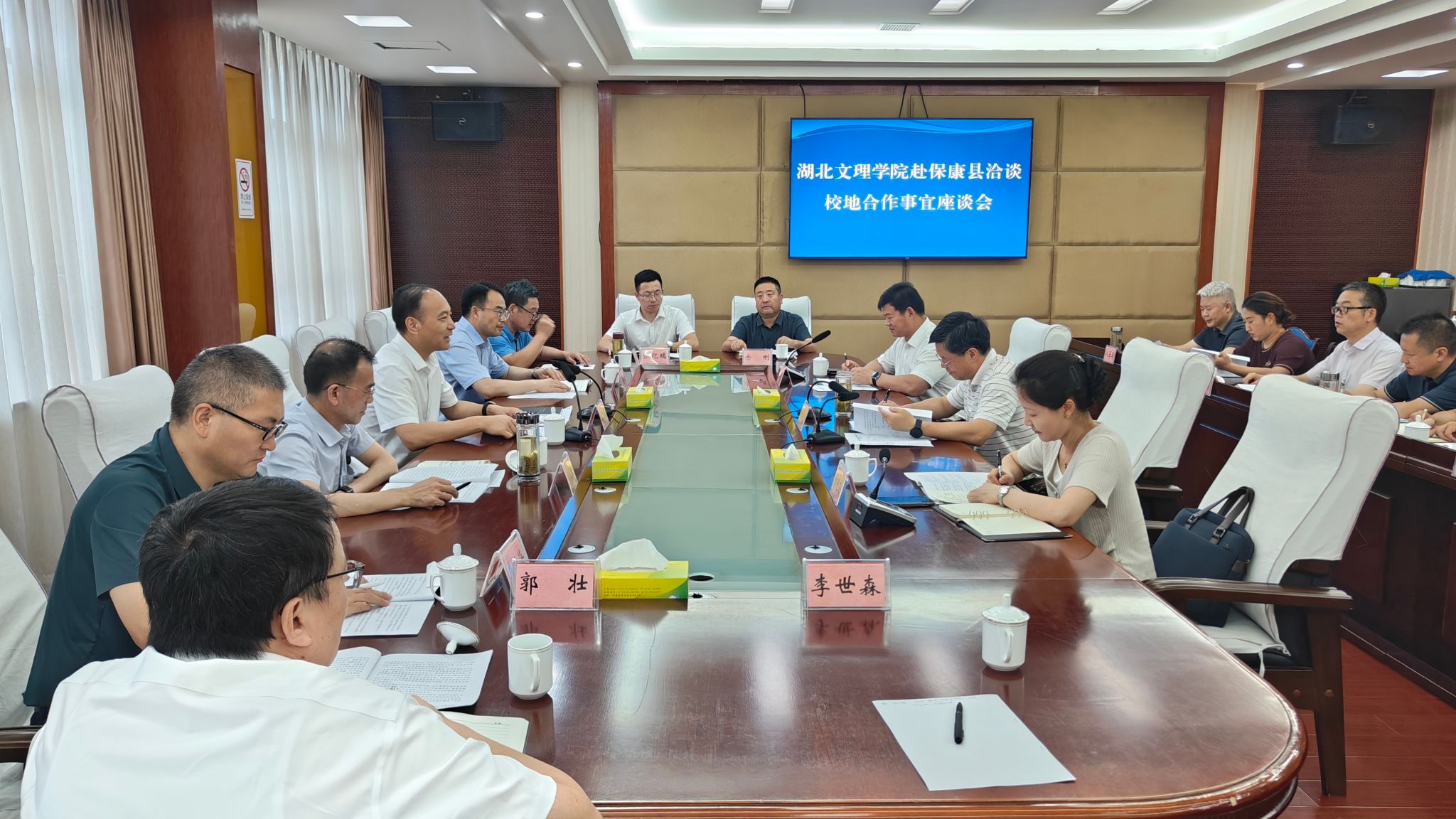 (党政办 通讯员 李世森)7月10日,学校校长杜国锋带队赴保康县洽谈校地合作事宜。保康县委副书记、县长杜云峰接待了杜国锋一行,并就深化校地合作开展座谈交流。