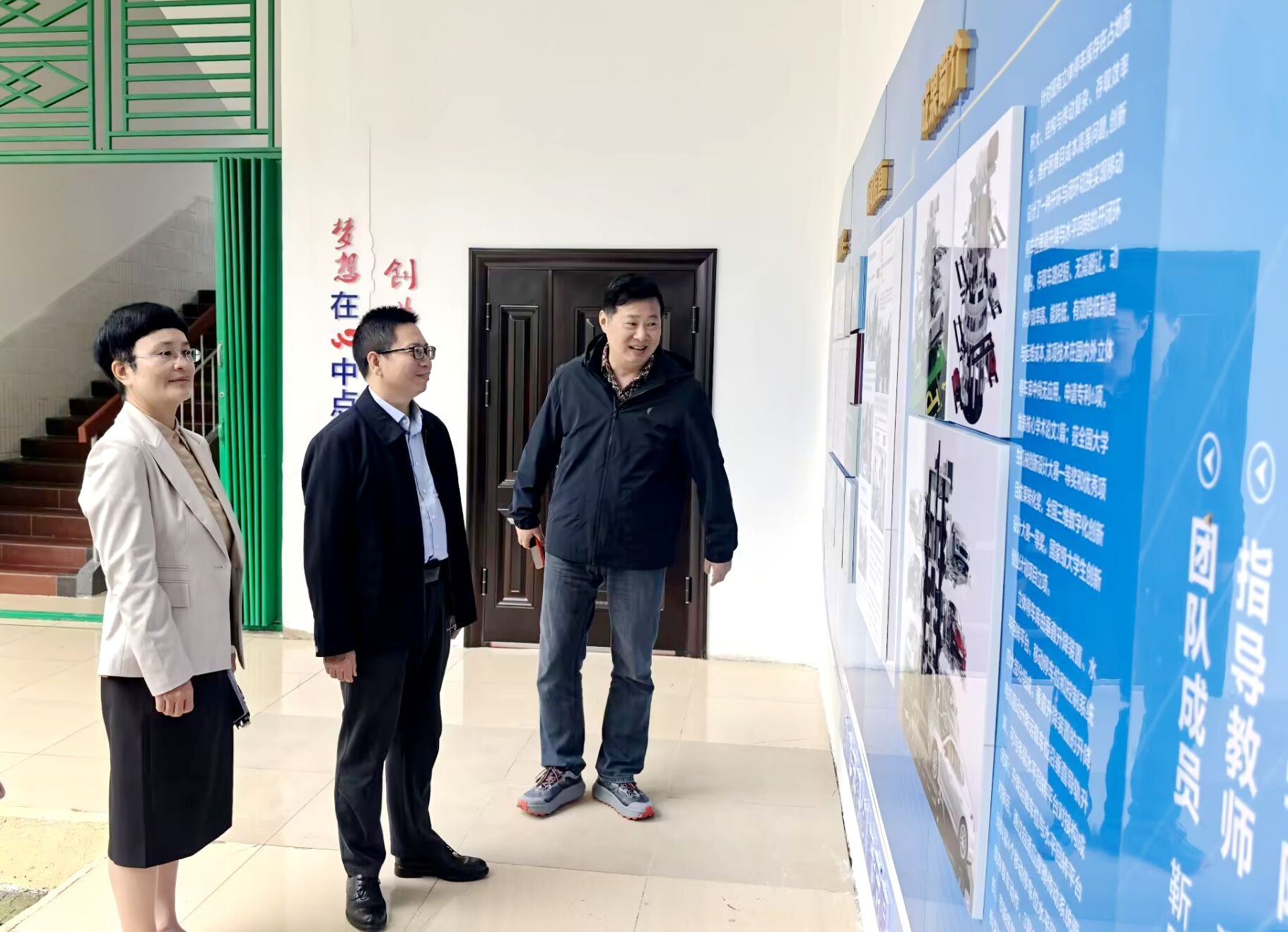 王进一行实地考察了学校“一站式”学生社区“智园”内的“科创长廊”以及湖北科创学院(隆中)部分实验室、学科竞赛实验室,并听取了学生创业团队的项目和产品介绍。