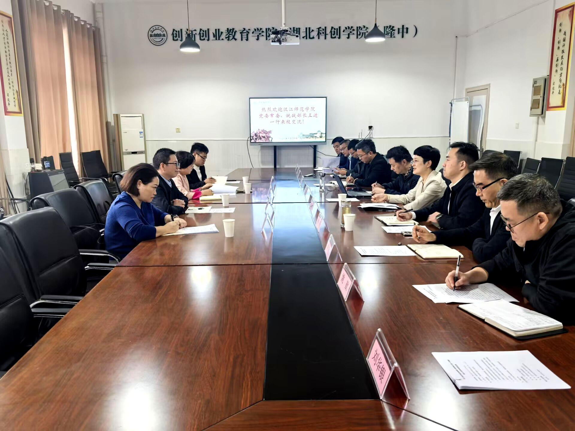 双方围绕创新创业教育课程改革、创业孵化团队管理、大创项目和学科竞赛项目选拔储备、“创响荆楚”方案实施等方面进行了交流。