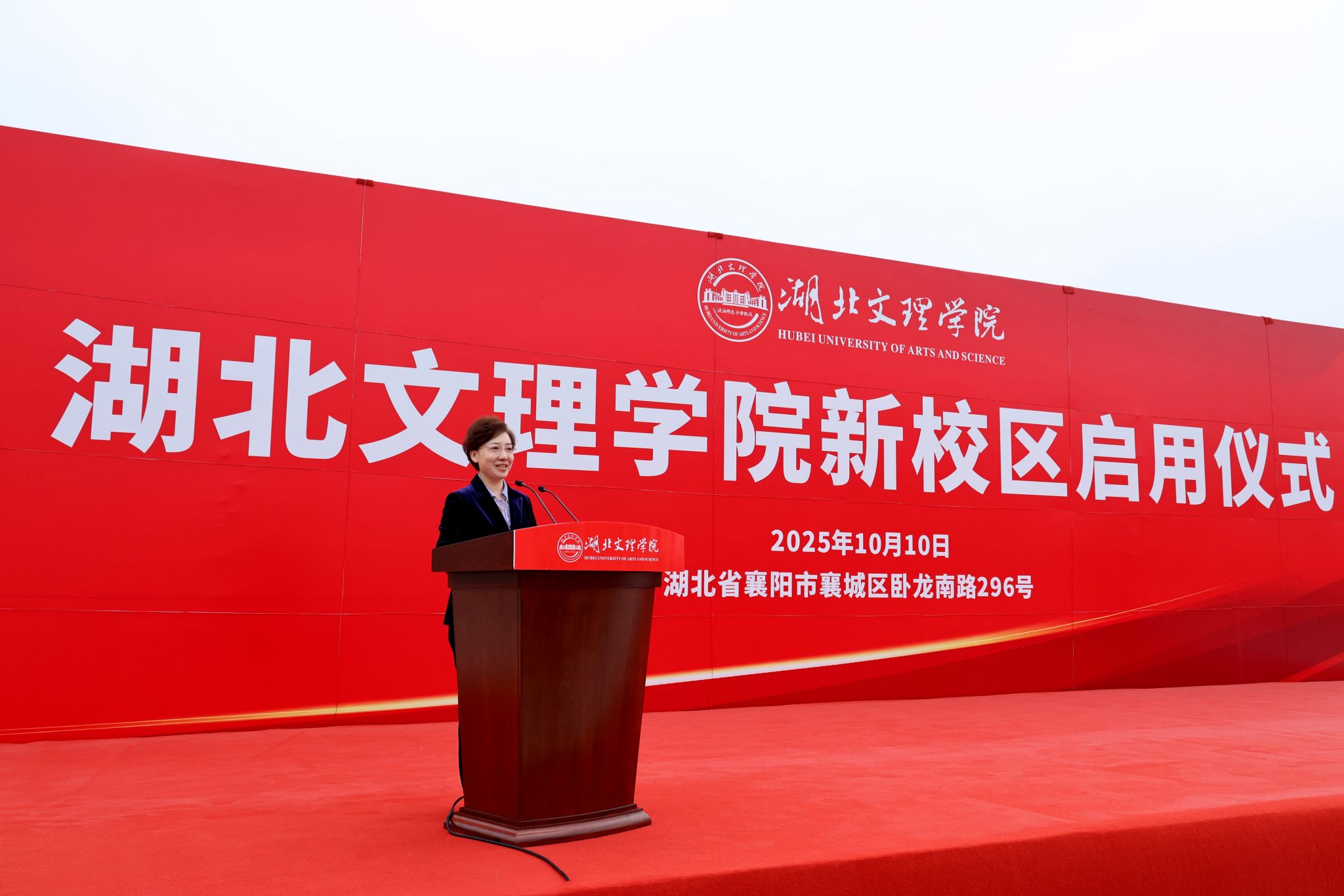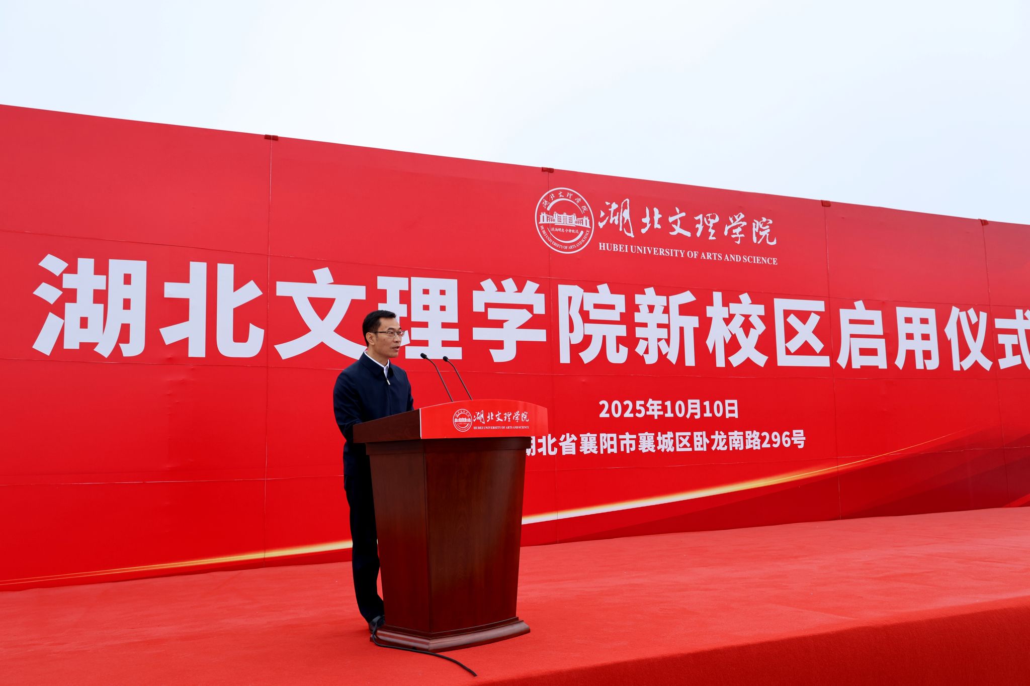 付拥军在致辞中指出,新校区的建设,凝聚着各级领导的心血智慧,饱含着社会各界的殷切期望,承载着无数人的辛勤付出与无私奉献,更抒写着“铁打襄阳精神”的崭新篇章。新校区的启用,是湖北文理学院发展史上一个重要的里程碑,标志着学校办学条件实现了历史性跨越,必将有力激发学校的办学活力和创新潜能。学校的跨越提升,也必将为襄阳市高质量发展注入持久、强大的动力。他表示,市教育局将锚定市委、市政府确定的“2026年9月整体迁入”的目标,不断增强责任感、使命感、紧迫感,认真复盘总结人文社科组团建设的经验,理清建设工期节点,细化“五化管理”要求,确保新校区如期全部投入使用,一如既往地全力支持湖北文理学院的建设与发展,努力为学校创造更优的环境、提供更好的服务。