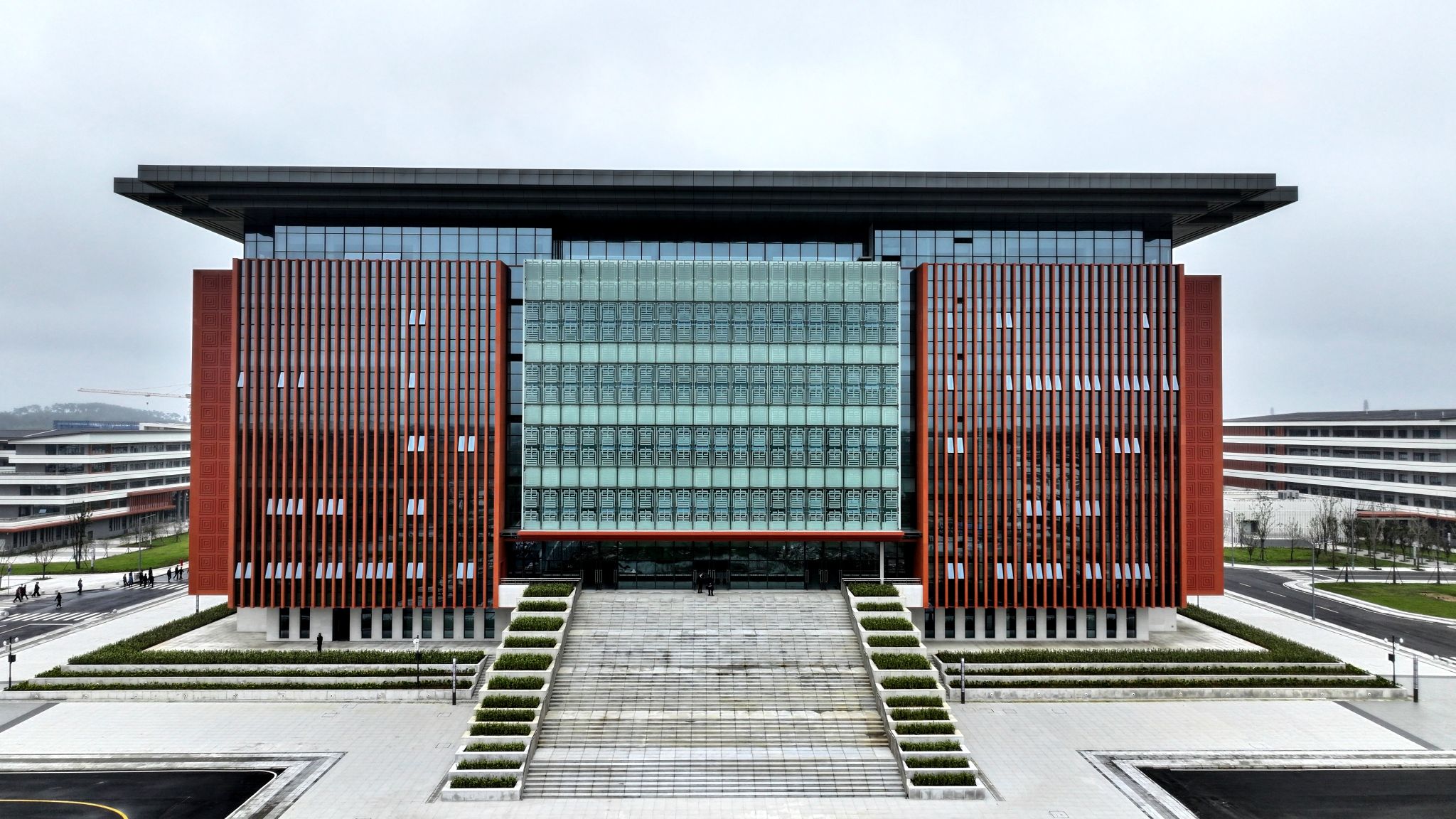 据悉,学校新校区规划坚持贯彻新发展理念,按照“天然生态、自然格局、山水相依、文脉相承”的思路进行设计。总占地面积2404亩,其中,建设用地1800亩,水域和绿地604亩;总建筑面积60.67万平方米,总投资55.58亿元。目前,人文社科组团已全面建成,共有19栋单体建筑,建筑面积22.75万平方米,顺利完成第一阶段建设目标任务。