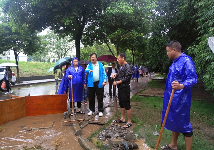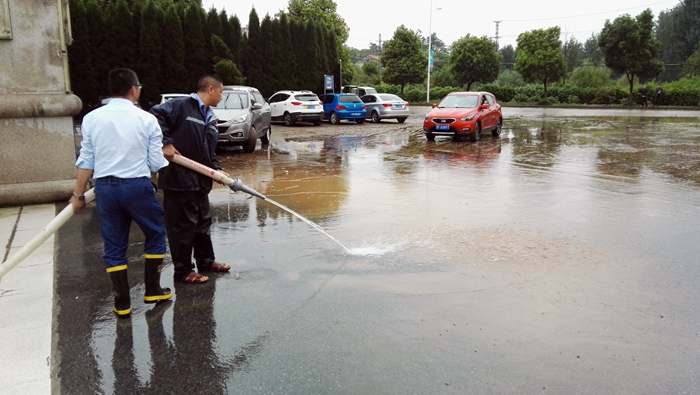 保卫处工作人员在凌晨四时巡逻校园获悉险情后,立马向处领导和分管校领导汇报。副校长魏跃春10日凌晨指示后勤集团、保卫处、资产经营公司主要负责人,立即召集应急分队全面清扫校园里的积水和泥浆。