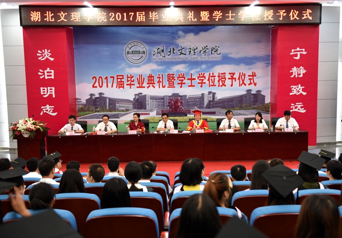 仪式在国歌声中拉开帷幕。纪委书记宋双伟宣读《湖北文理学院关于颁发谈军军等4084名学生毕业证书的决定》、《湖北文理学院关于授予道伟等3784名学生学士学位和李静等79名学生双学士学位的决定》、《关于表彰2017届毕业生先进个人的决定》。校领导为优秀毕业生代表颁发荣誉证书。毕业生代表、在校生代表、教师代表分别发言。